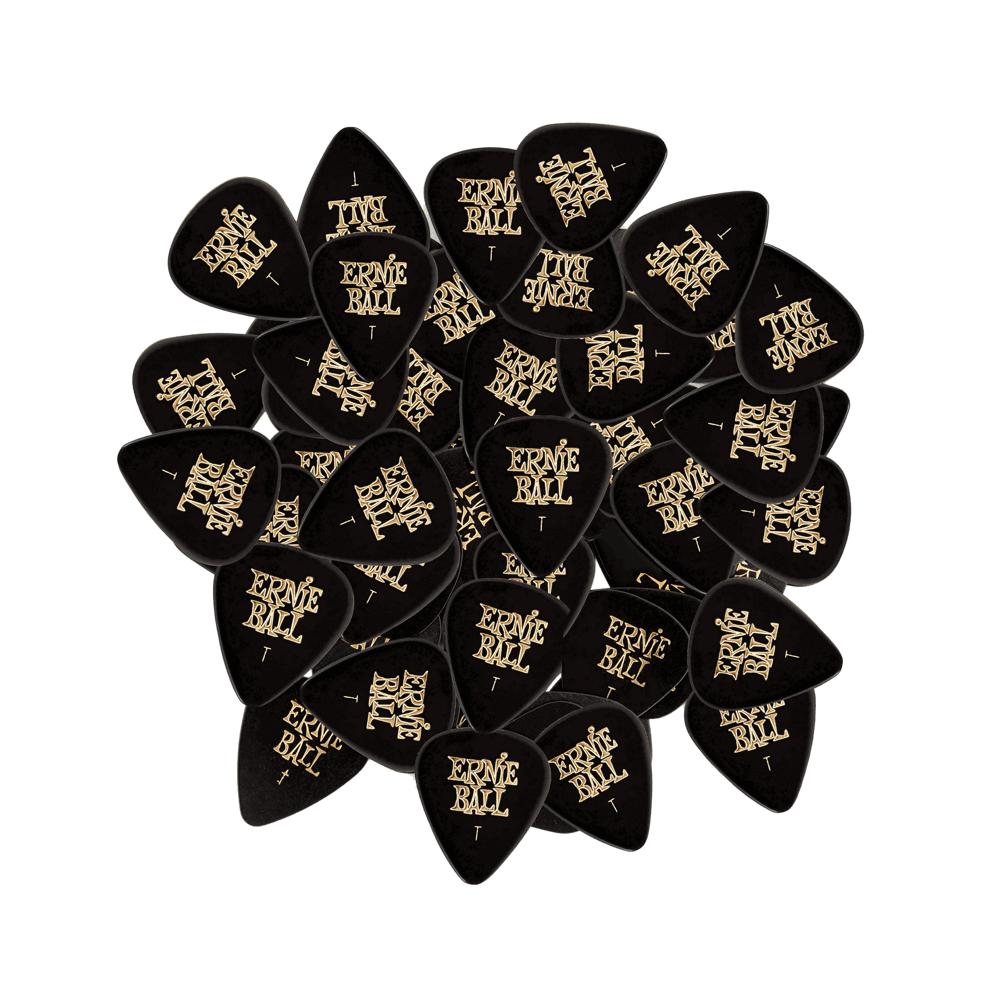 Ernie Ball branded plastic picks in various sizes