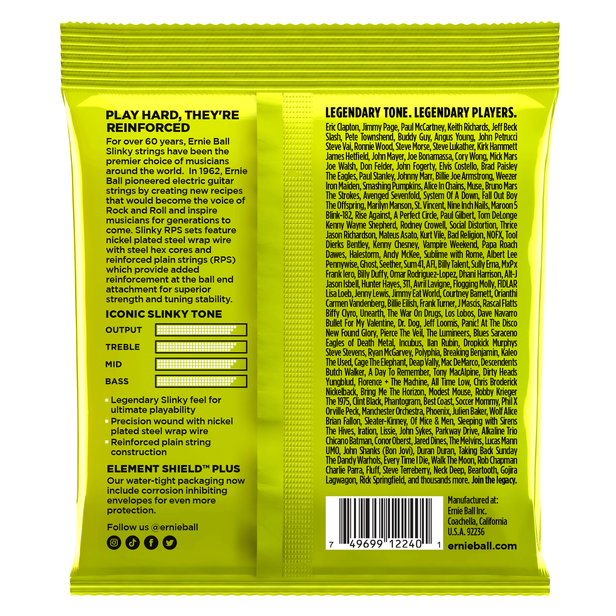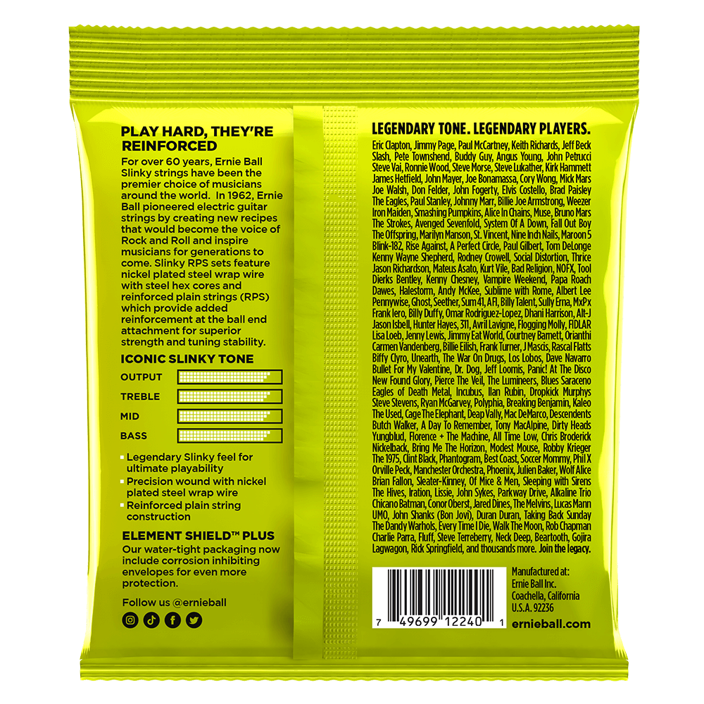 AssemblyErnie Ball single strings are coiled and packaged individually in order according to specific Slinky gauge requirements. The Slinky sets are then processed and flow wrapped in air tight individual foil packs.