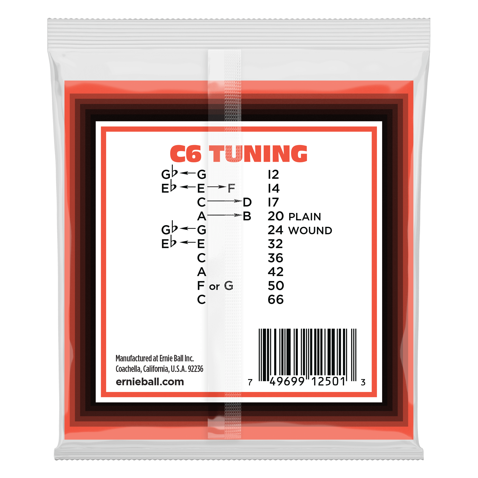 Ernie Ball Pedal Steel 10-String C6 Tuning Nickel Wound Electric Guitar Strings are precision manufactured to the highest standards and most exacting specifications to ensure consistency, optimum performance, and long life. All wound strings are made from nickel plated steel wire wrapped around a hex shaped steel core wire. Meanwhile, the plain strings are made of specially tempered tin plated, high carbon steel producing a well balanced tone for your guitar. Gauges .012, .014, .017, .020p, .024w, .032, .036, .042, .050, .066