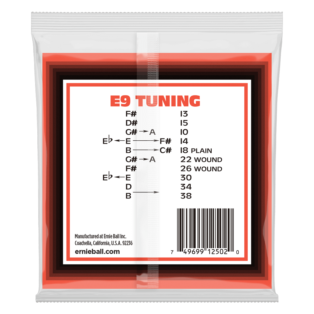 Ernie Ball Pedal Steel 10-String E9 Tuning Nickel Wound Electric Guitar Strings are precision manufactured to the highest standards and most exacting specifications to ensure consistency, optimum performance, and long life. All wound strings are made from nickel plated steel wire wrapped around a hex shaped steel core wire. Meanwhile, the plain strings are made of specially tempered tin plated, high carbon steel producing a well balanced tone for your guitar. Gauges .013, .015, .010, .014, .018p, .022w, .026, .030, .034, .038