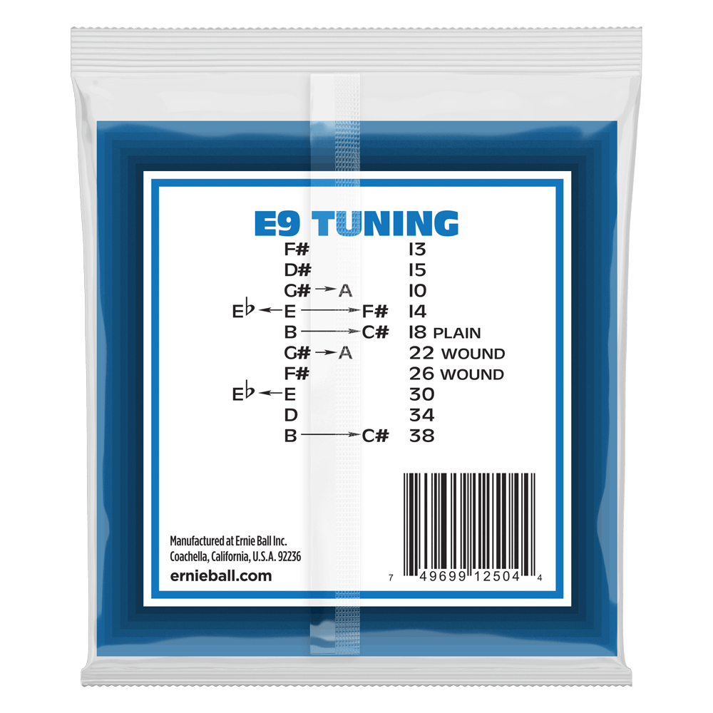Ernie Ball Pedal Steel 10-String E9 Tuning Stainless Steel Wound Electric Guitar Strings are made from stainless steel wire wrapped around tin plated, hex shaped, steel core wire. Plain strings are tin plated, high carbon steel These strings provide brighter tone and longer string life. Gauges .013, .015, .010, .014, .018p, .022w, .026, .030, .034, .038.