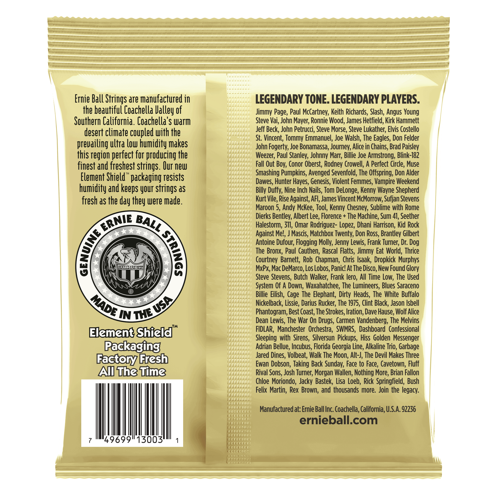 AssemblyErnie Ball single strings are coiled and packaged individually in order according to specific Slinky gauge requirements. The Slinky sets are then processed and flow wrapped in air tight individual foil packs.