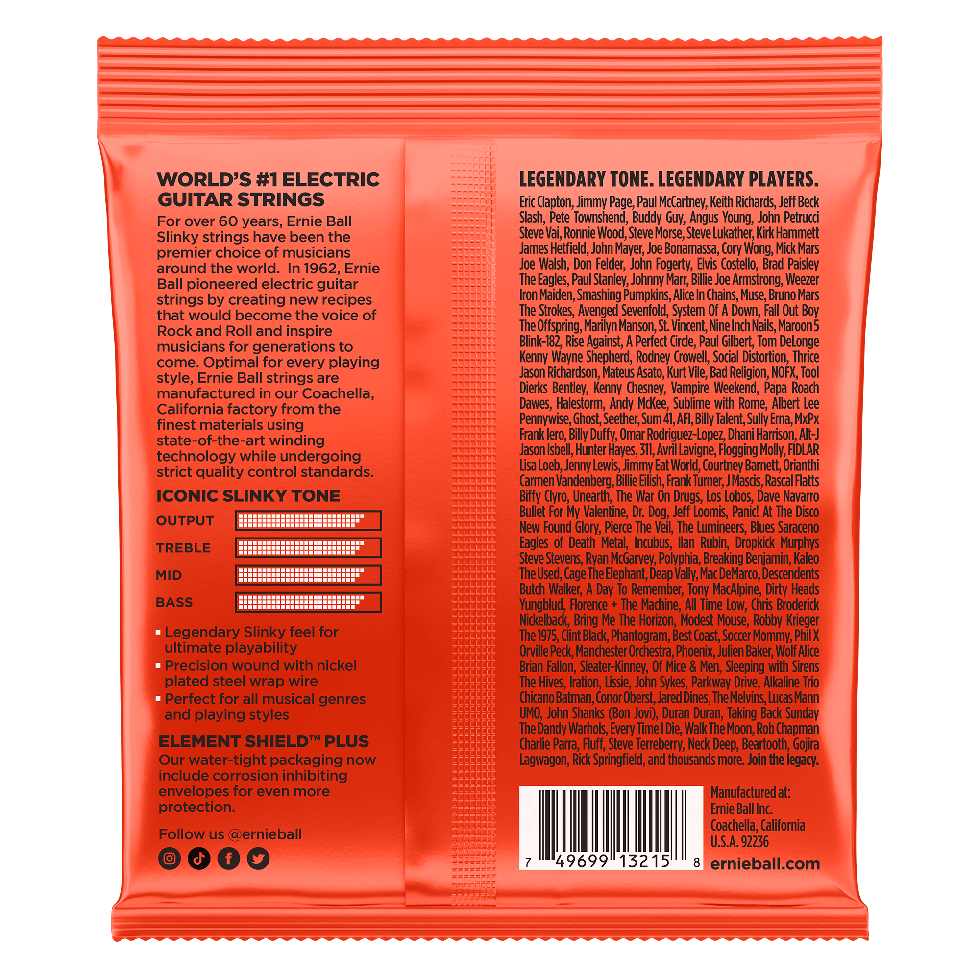 AssemblyErnie Ball single strings are coiled and packaged individually in order according to specific Slinky gauge requirements. The Slinky sets are then processed and flow wrapped in air tight individual foil packs.