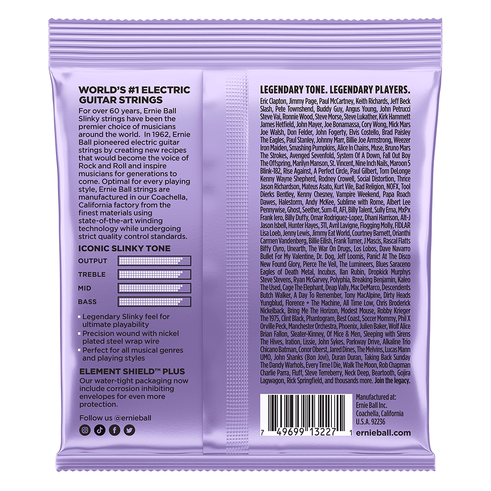 A legnépszerűbb szettjeink már 3-as pakkban is elérhetőek.Nem csak pénzt takaríthatsz meg a megvásárásukkal, de biztos lehetsz benne, hogykevesebbszer fordul majd elő, hogy kifogysz a friss Slinky húrjaidból.Az Ernie Ball Ultra Slinky húrok azoknak a zenészeknek lettek kitalálva akik kedvelik a Regular és Power Slinky húrok kombinációját. Ezek a húrok a precíz gyártásnak köszönhetően tökéletes összetételűek, optimális játékérzetet biztosítanak és hosszú élettartamúak. Az Burly Slinky sodort húrjai nickel bevonatú acélhúrok melyek egy hatszögletű acél vezetőszál köré vannak tekerve. A sima húrok vékony bevonatú karbon acélból készülnek, ezzel nyújtva a tökéletesen kiegyensúlyozott hangot a gitárodnak. A húrok átmérője .010.013.017.028.038.048