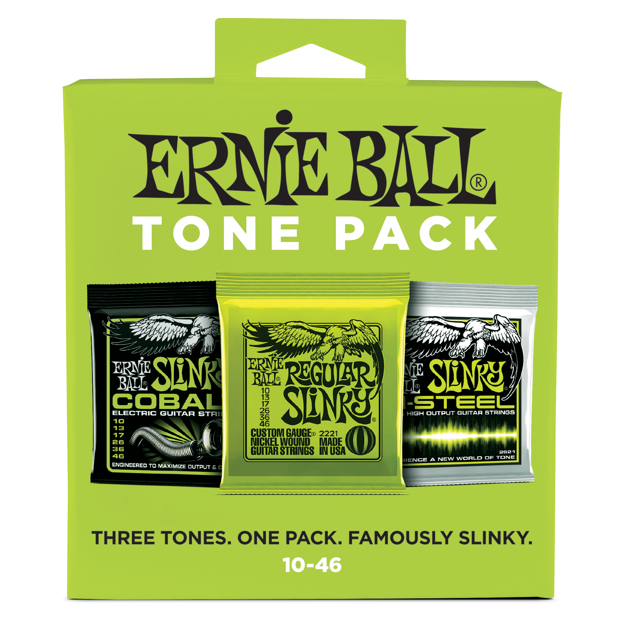 The Ernie Ball Electric Guitar String Tone Pack is the perfect way to experience three legendary electric guitar tones. From the world's #1-selling Original Slinky strings, featuring classic, balanced tone, or the Cobalt Slinky Strings, providing higher output and superior clarity, to the M-Steel Slinky strings, which are the loudest, most expressive strings ever created. Three tones. One Pack. Famously Slinky.