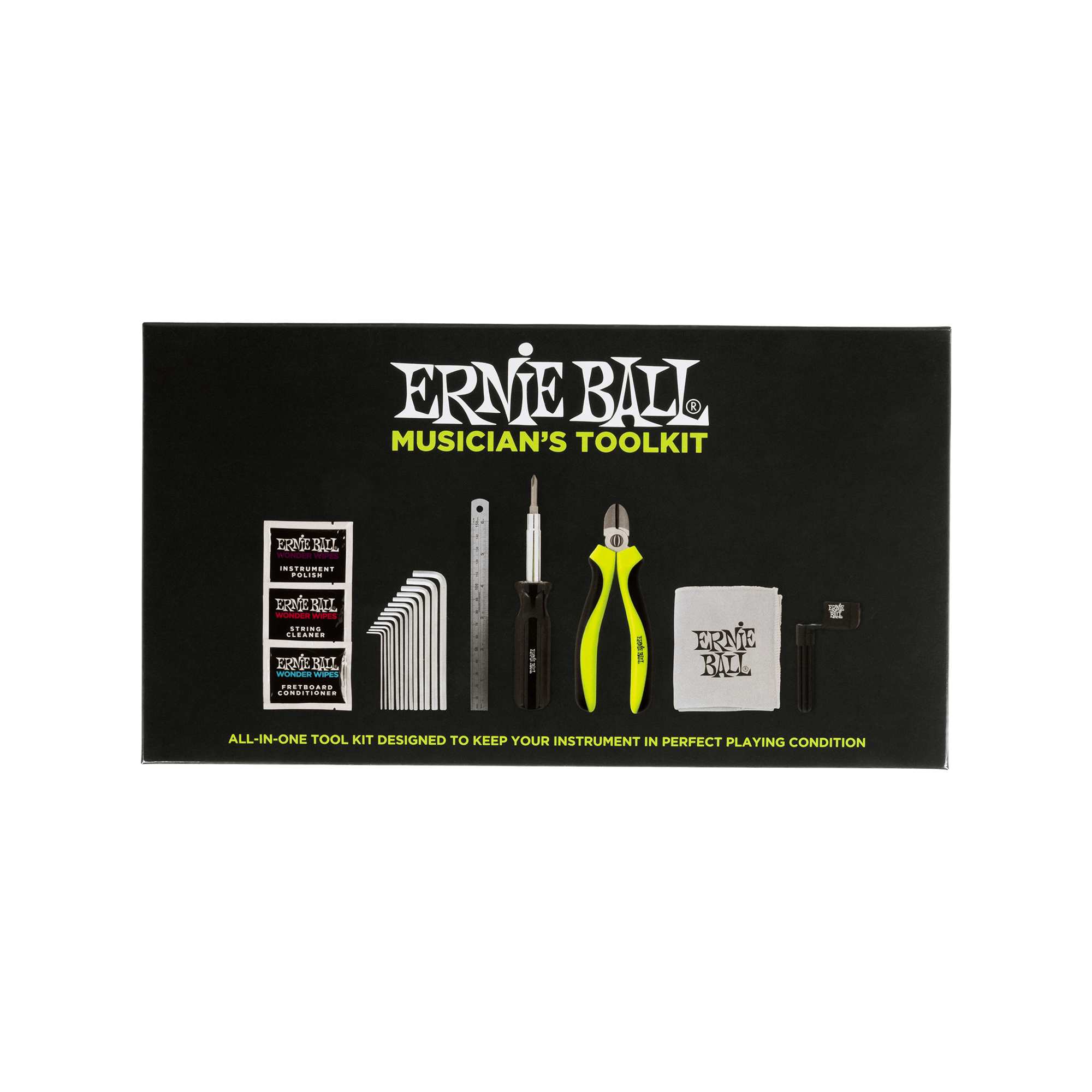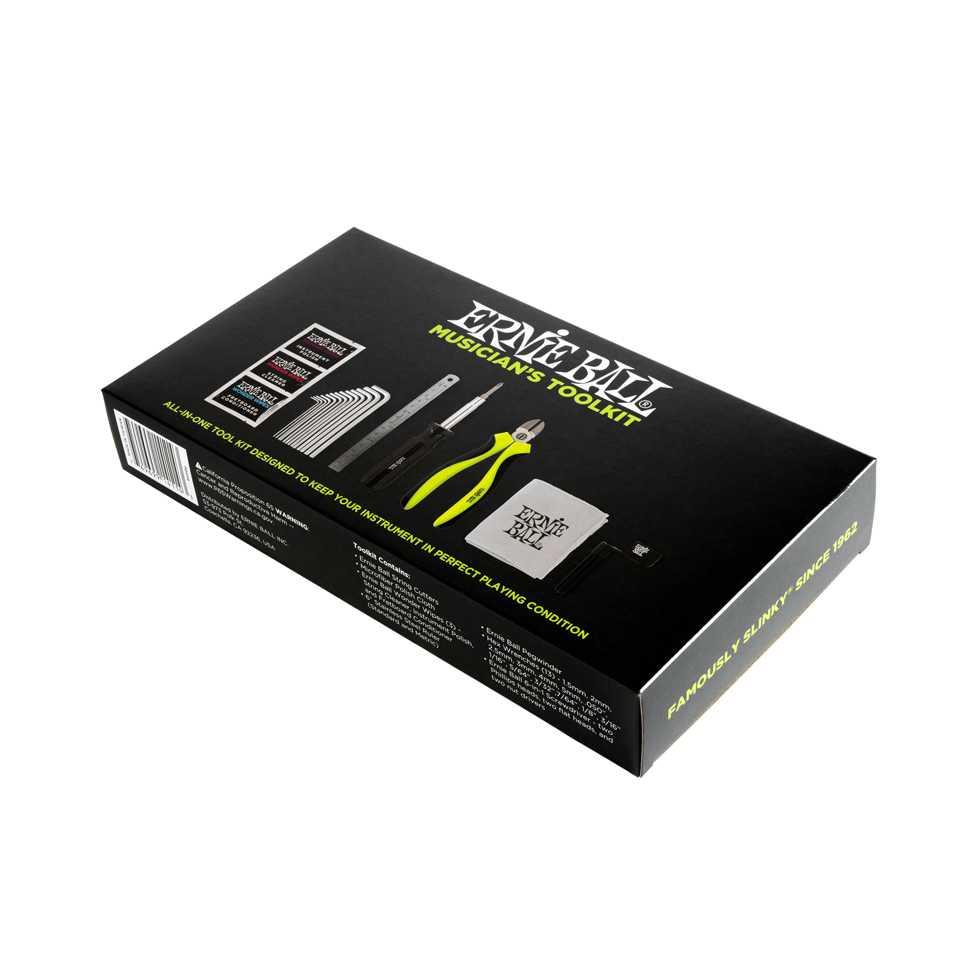 Az Ernie Ball Musicians Toolkit egy nélkülözhetetlen szerszámkészlet minden gitáros/basszusgitáros számára. Gyakorlatilag minden megtalálható benne amire szükségünk lehet. Csípőfogó, 6 az egyben csavarhúzó, különböző imbuszkulcsok, fém vonalzó (skálázott), mikroszálas kendő, húrtekerő kurbli, hangszerápoló kendők. Húrozáshoz, beállításhoz, tisztításhoz, karbantartáshoz elengedhetetlen.
