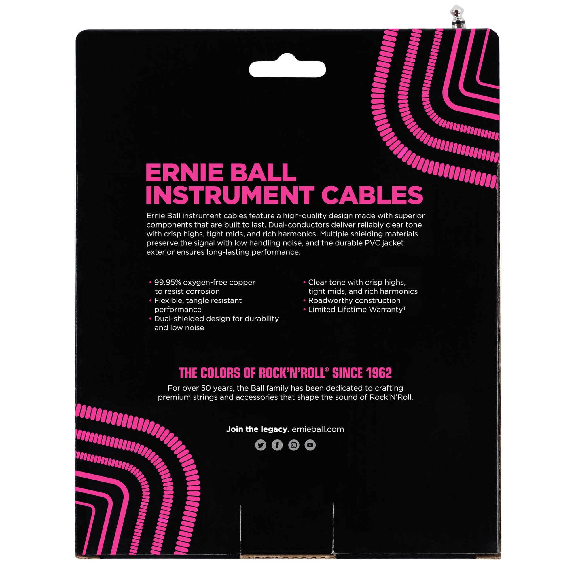 A felső kategóriás kivitelezésű Ernie Ball hangszer kábelek kiváló minőségű összetevőkből, hosszan tartó használatra készültek. A hangszer kábelek kivételesen csendes és tiszta jelátvitelt biztosítanak és precízen továbbítják a hangszerek által kibocsátott teljes frekvencia tartományt. A kábelek dupla földeléssel, dupla vezetékkel és egyedi csatlakozó burkolattal rendelkeznek, mely garantálja a tiszta hangzást, az alacsony zajt, a gubanc-mentes használatot és a strapabíró, hosszan-tartó működést. Oxidálódás álló 99.99%-os oxigén-mentes réz alkotóelemek, rugalmas, gubanc-mentes konstrukció. Dupla földelésű és dupla vezetékes kialakítás az alacsony zaj és a tartósság érdekében. Természetes, tiszta hangzás, kiegyenlített frekvencia átvitellel. Strapabíró csatlakozó ház a hosszantartó működés érdekében, ezek jellemzik ezeket a nagyszerű kábeleket.