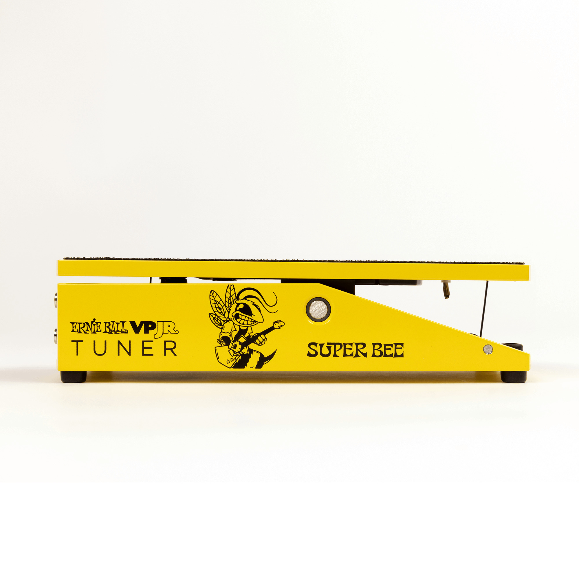 Limited to 500 units worldwide, the Ernie Ball VPJR “Super Bee” Tuner is the perfect combination 2-in-1 pedal offering precise volume control with an enhanced definition digital tuner. The pedal features a fast and accurate chromatic tuner with graphic volume display that is visually attractive and easy to operate. The large display automatically switches between tuner and volume modes depending on the signal level, allowing the player to tune at minimal volume. However, other “always on” configurations are accessible via a double tap on the touch screen. The tuner can also be calibrated to a variety of ideal reference pitches. The pedal’s compact, rugged design consists of an aluminum housing and features a stronger, more durable PVC coated Kevlar cord ensuring consistent tension throughout the foot sweep.
