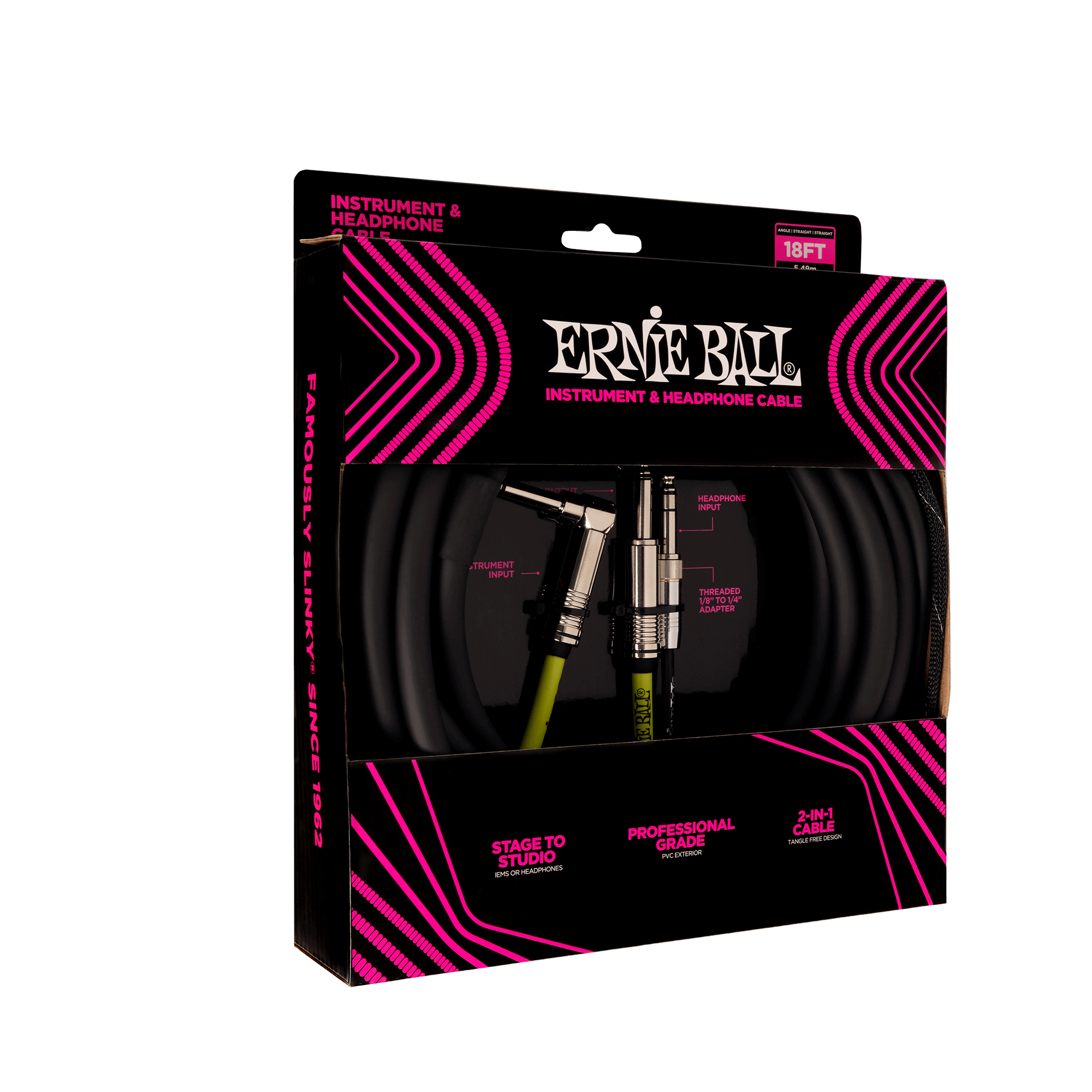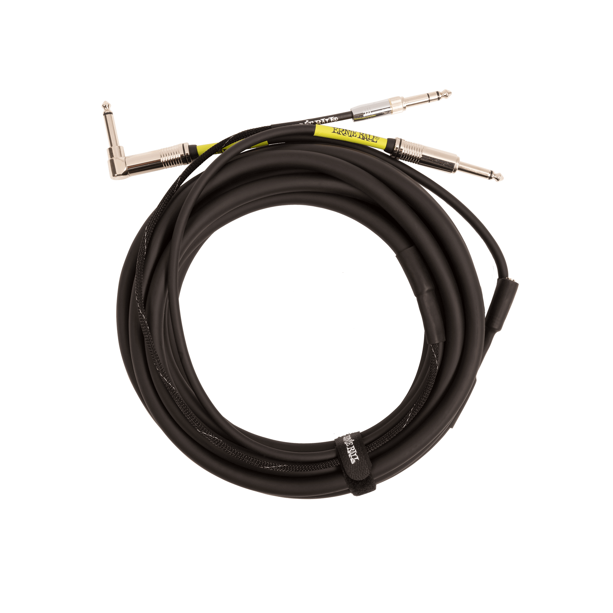Az Ernie Ball Kombó kábel egy all-in-one megoldás azon zenészek számára akik fejhallgatót, vagy fülmonitor rendszert használnak. Tökéletesen működik a színpadon fülmonitorhoz éppúgy mint a stúdióban felvételnél vagy otthoni gyakorláshoz. Sokoldalú felhasználhatósága teszi rendkívül univerzálissá ezt a fantasztikus kábelt. A kábel egyik végén pipás 6,3-as mono jack dugó található, melyet a hangszerünkhöz csatlakoztatunk. Ugyanezen a felén van egy 3,5-es sztereó jack aljzat a fejhallgatónk, fülmonitorunk részére. A kombó-hangszerkábel másik végén viszont egyenes a 6,3-as mono jack dugó, melyet - a normál kábelekkel megegyező módon - dughatunk az boardunkba vagy az erősítőnkbe. A fülmonitor kábel végére egyenes, 6,3-as, sztereó jack került.
