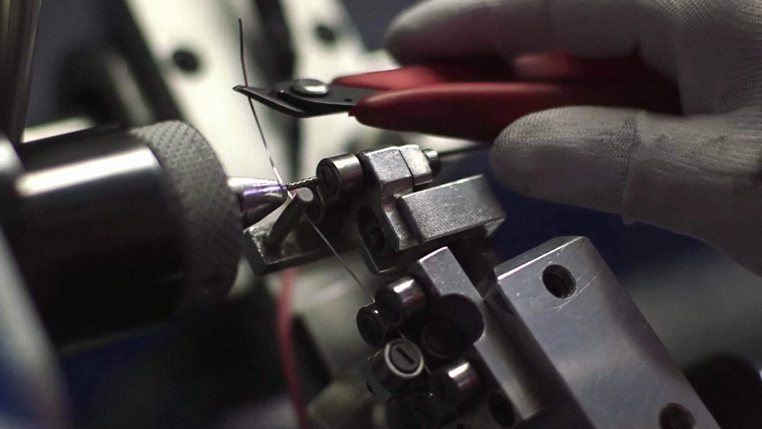 String WindingWound strings consist of a core and a wrap layer. Cores are manufactured by cutting hexagonal shaped wire to length and twisting one end with a specific shape and twist count to attach a ball end. Once made, cores are loaded onto winding machines which spin the core while laying a consistent winding of wrap wire around the core.