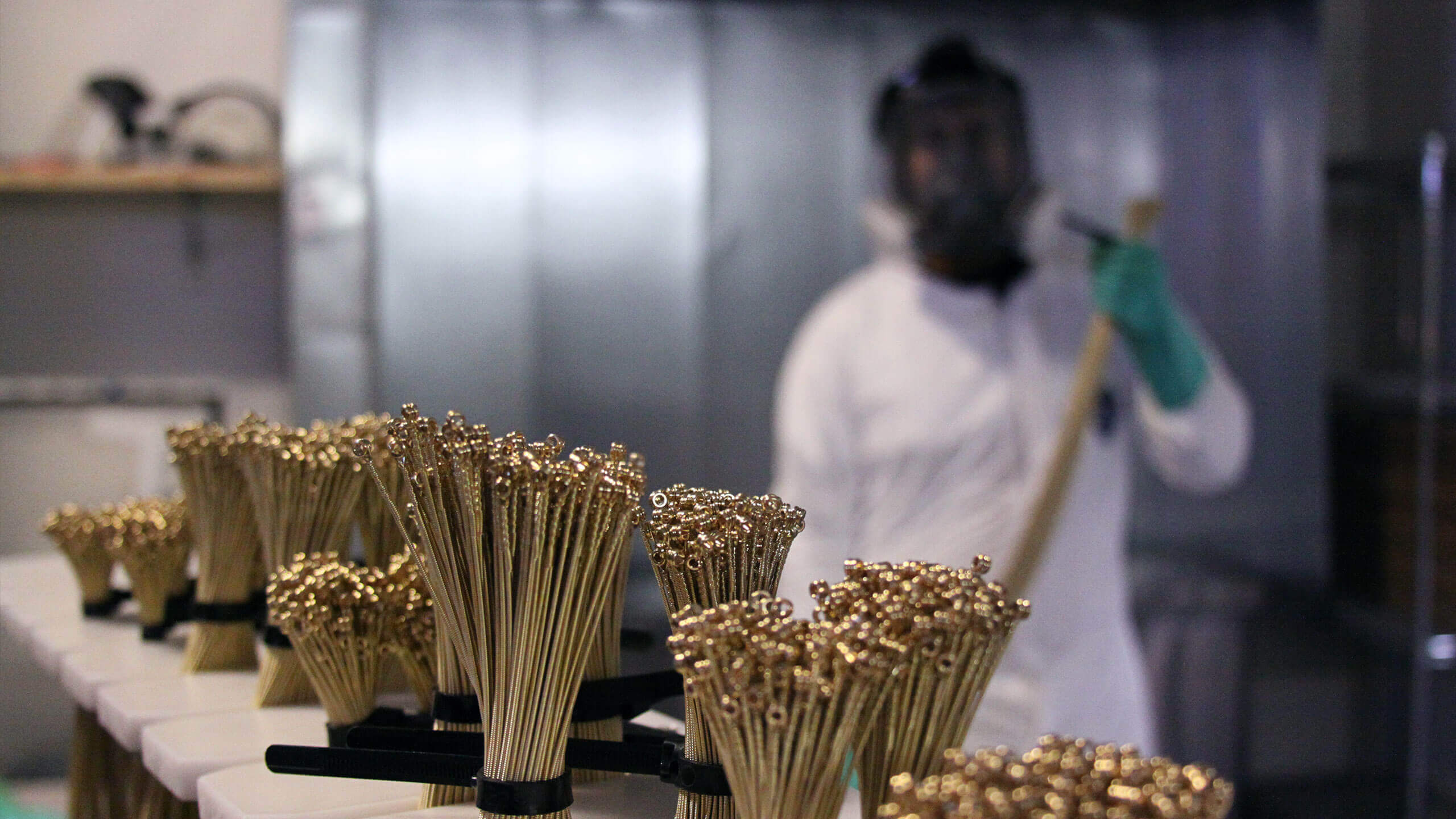 Coated StringsCoated strings are treated using our own proprietary nanotechnology. Strings are staged in bundles which are loaded into chambers which prepare the string surface and apply the treatment.